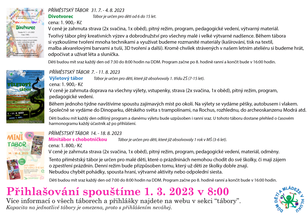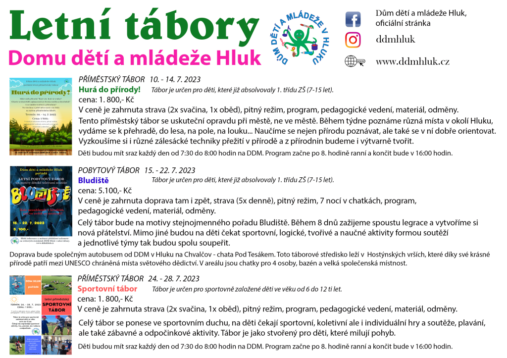 Veškeré informace k táborům najdete pod těmito odkazy: